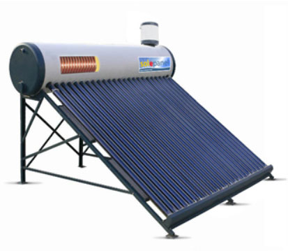 • Heat Pipe (un pipe por tubo): Los tubos de vacío poseen al interior un tubo de cobre, y este en su interior, contiene un líquido vaporizante que a 25°C el fluido se calienta y se vaporiza absorbiendo el calor latente. La radiación solar provoca la evaporación del líquido, haciendo que éste suba al extremo superior del tubo, que al estar más frío hace que el vapor se condense, ceda así su energía al agua de consumo (Cabezas de cobre en el interior del estanque), y regresa en estado líquido por gravedad al extremo inferior del tubo, iniciándose de nuevo el ciclo.
