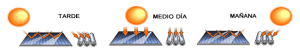 • Sólo entregan máxima potencia con los rayos del sol perpendiculares al colector (al mediodía). Esta potencia decrece durante las horas de sol de la mañana y la tarde.