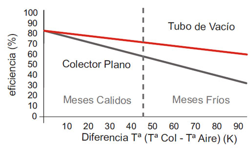 Si comparamos los paneles planos con los tubos de vacío se tiene el siguiente resultado: